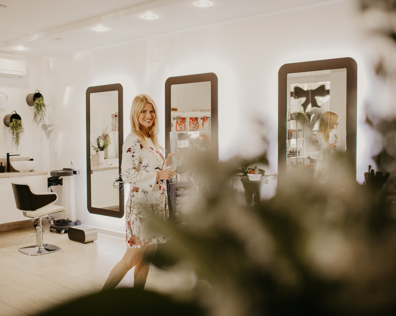 Veronika modern és letisztult szalonjához modern stílus dukál, így egy enyhén deszaturált színpalettához nyúltunk, hozzánk is ez a színvilág áll a legközelebb. Veronika történetébe az Instagram oldalunkon is beleolvashatsz.